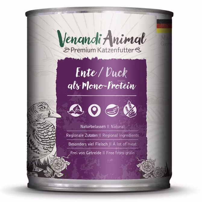 Venandi Animal Ente als Monoprotein für Katzen 24x800g