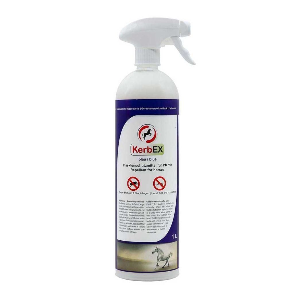 KerbEx blau Fliegenspray für Pferde mit leichtdosiertem Knoblauch 1 Liter mit Sprühkopf